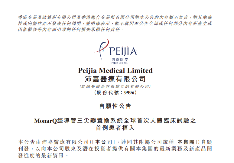 沛嘉医疗-B(09996)公布,公司已成功完成MonarQ TTVR®系统全球临床研究的首名患者植入。此手术由美国加州洛杉矶西达赛奈医院斯密特心脏研究所副所长兼介入性心脏科主任Raj Makkar医生···