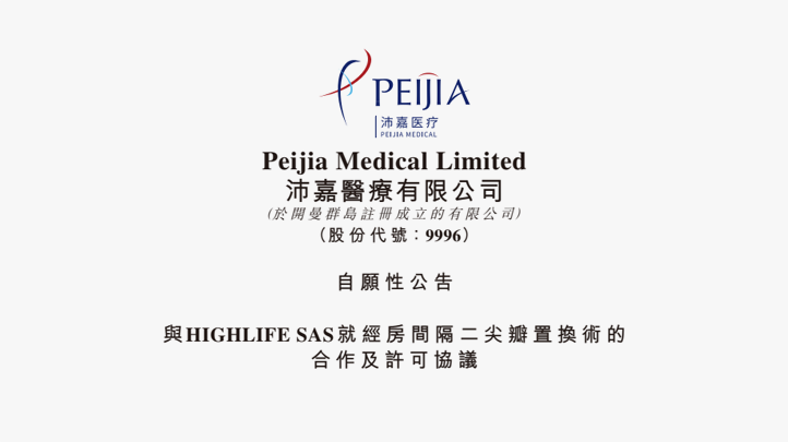 與JENAVALVE TECHNOLOGY, INC.就用於主動脈瓣反流的經導管主動脈瓣置換產品訂立合作及許可協議